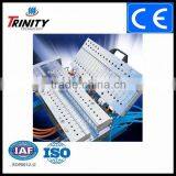 Zonfa Trinity develops three kinds of downstream equipment, including single strand, double strands and panel downstream equipment. With regard to the length of calibration table, there are 6m, 8m, 11m and 14m for your option. Advanced energy saving design, it can reduce energy consumption by 40%. Haul-off machine adopts Trinity unique lifting technology with the advantages of stable work and strong pulling force. Cutting uint has two options, saw cutting and dust free guillotine cutting. In accordance with customers' individual requirements, Trinity can provide energy saving and stable systemic design solution.