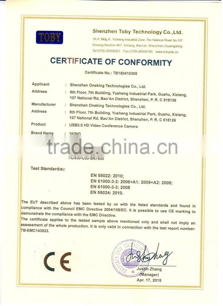 Oneking Technologies was found in 2005, a high-tech enterprises which has 110 staff, engaged in designing, producing and marketing of the professional Color Video Conferencing cameras and video surveillance products over 7-year. Since 2001 we had took part in research of network video & audio products in the Institute of Shenzhen University telecommunications, and keep pace with the most advanced Technologies. |