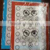 Permanent non-stick - permanent non-stick, it will not lose this feature due to wearing.Silicone baking mat was made of nontoxic silicone,coated on fiberglass fabric.It is assured that the bakeries will halve their cost if they use this mat instead of the baking paper. We can provide the OEM service and produce any size,any shape,any colors as your reuqirements.