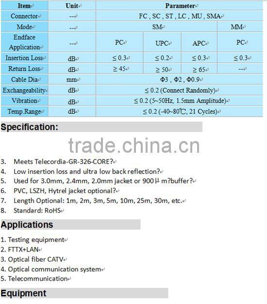 Factory Supply Wholesale Price Fiber Optic Patch Cord