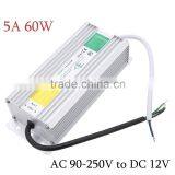 IP67 Lighting Transformers AC 90-250V to DC 12V 5A 60W Voltage Waterproof Transformer Switch Power Supply for Led Strip