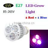 E27 6W LED Plant Grow Light Hydroponic Lamp Bulb 2 Red 1 Blue for Indoor Flower Plants Growth Vegetable Greenhouse AC85-265V