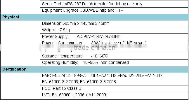 re-multiplexing, descrambling, multi decoding and TS over IP operations, all these features make IRD1341 one of the most competitive product in the head-end market.