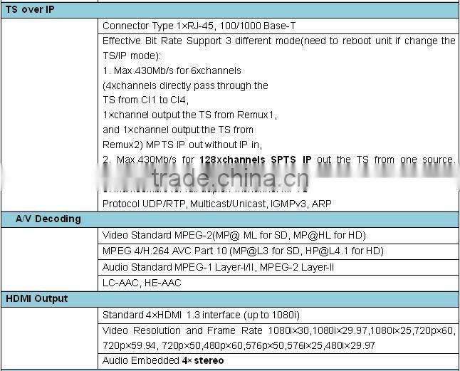 - Built-in TS re-multiplexer receives from IP, CI Slot1 to CI Slot4 and TS/IP inputs