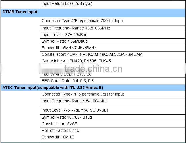 - 4 x Tuners Input, Supports variety of input options DVB-T2/T/S2/S/C/DTMB/ATSC/ISDB-T