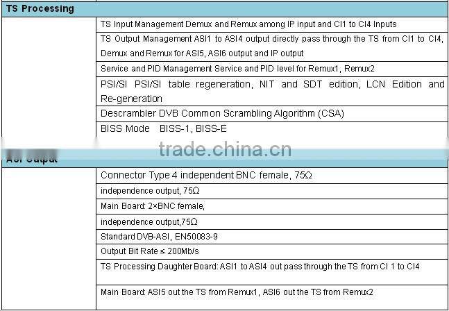 - 1xchannel full duplex TS over IP, 5xchannels MPTS IP out, or 128xchannels SPTS IP out