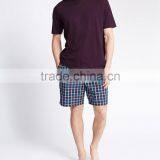 Pure Cotton Fabric T-shirt& Check Short Men's Pajama Set