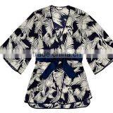 Cheap Custom Sexy Woman Short 100% Pure Printed Silk Charmeuse Night Sleeping Kimono Robe With Side Pockets