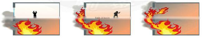 Superior property of fire-resistance | It is able to withstand the harsh test of fire, around 1000 °C flame, for max.180 minutes without broken and stop the spreading of flame and smoke. It can protect people & high-valued articles temporarily from the threat of fire and win the most precious period for people to escape, move away the high-valued articles and extinguish the fire. It solved the problem of poor fire-resistance of ordinary glass sheets in buildings. As illustrated in the picture below.