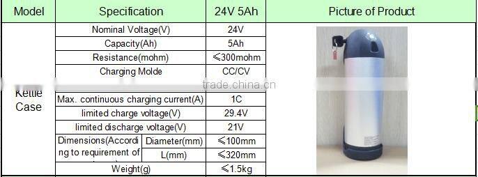 Kettle Case 24V 5Ah Lithium-ion Battery for Electric Bike