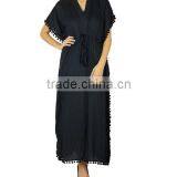 Indian Cotton Designer Short Kaftan Women Sexy Maxi Dress Pompom Kaftan Manufacturer