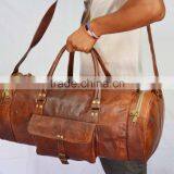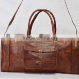 Vintage Gym Duffle Bag Indian Handmade Real Leather Travel Luggage Bag