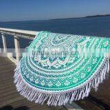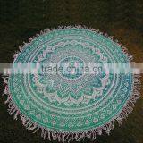 Indian Handmade Green Ombre Mandala Round Beach Throw Hippie Boho Beach Towel