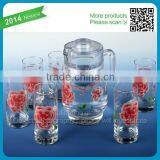 Custom Decal Cheap Glass Caraffes and Cups Hot Sale Glass Tea Set 6in1 Household Effects