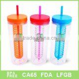 Fadshionabke Double Wall Plastic Tea and Fruit Infuser Mug With Straw