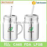 2016 New Design Stainless Steel Mason Jar With Straw and Handle
