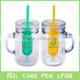 Fadshionabke Double Wall Plastic Tea and Fruit Infuser Mug With Straw