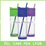Plastic Double Wall Drink Bottle With Lid and Straw