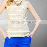 2015 Summer New Slim Lace Chiffon Shirt Beige Sleeveless Vest Coat Female Backing Shirt Lace Shirt