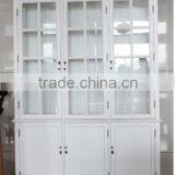 Antique Home Useful Living Room and Study Room White Wooden and Glass Tall Display Cabinet With Three Doors(NC-2818-10 )