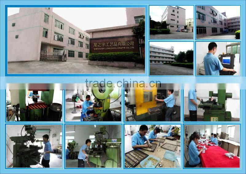 Shenzhen Longzhiyu Crafts Co., Ltd. is a professional manufacturer has 10 years experience in producing Metal Lapel Pins,Medals,Wooden Plaques,Souvenir Coins,Badges,Nameplates,Key Chains, Tie Bars,Cuff links,Book Marks, Money Clips and other relative metal products.We aim at offering high quality metal crafts and reasonable price for customers,and try our best to serve for clients.