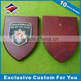 Wooden Wall Plaque With Customzied Metal Logo Wooden Shield Award