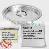 211 ( 65MM) Food Grade Partial Open Disposible Aluminum Lid