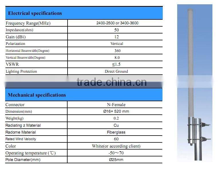Home > Products > Base Station antenna > Omnidirectional Wimax Base Antenna Outdoor, 2.3g Wimax Antenna