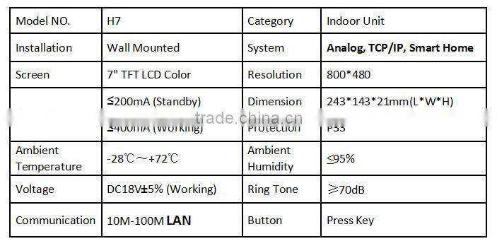 TCP/IP Smart Home Analog 7 Inch Color Screen Indoor Unit Video Door Phone