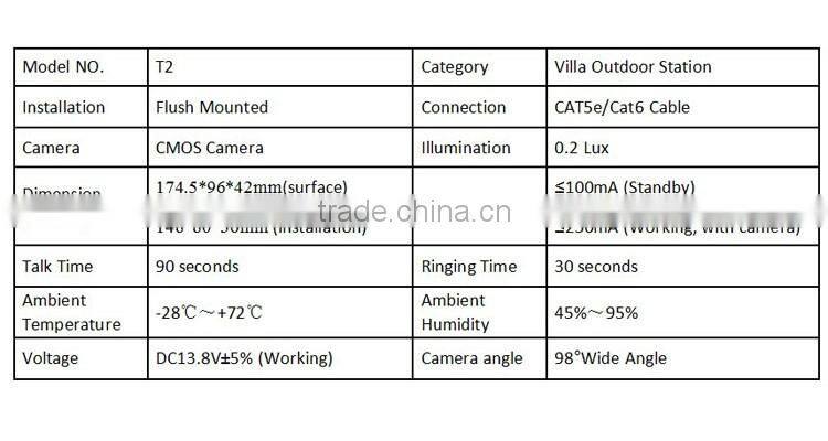 | Others | Outdoor station | Villa/ single apartment |