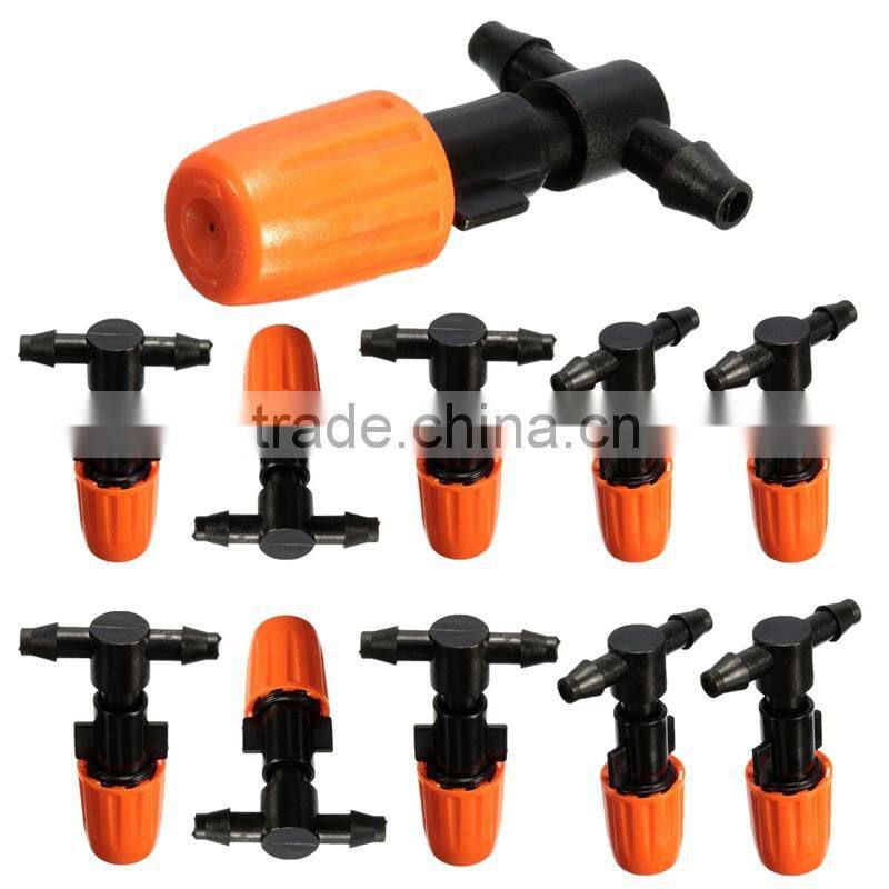 Newest 10pcs Agricultural Garden Plastic Mist Nozzle Orange Flower Misting Atomizing Sprinkler Nozzles Tee Sprayer Greenhouse