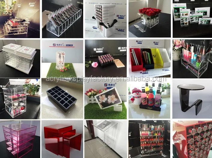 4) Our product mainly include display stand, cosmetic display, acrylic tray, acrylic nail polish stand, acrylic mirror, jewelry display, makeup organizer, display box, show holder, menu holder, acrylic award, photo frame, acrylic eyeglass display, acrylic glove box.