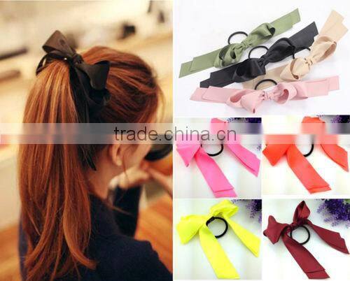 Sweet Color Scrunchie Ponytail Holder Satin Ribbon Bow Hair Band Quality Choice