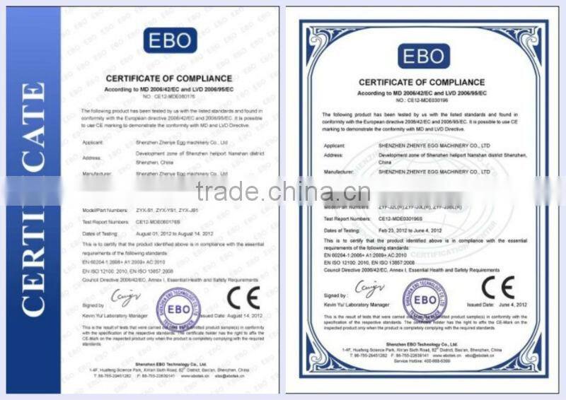 2.we have experienced engineers and workers to guarantee you get high quality egg machinery .in the year of 2010,our egg machinery passed CE certificate ,which means our egg machinery is qualified to enter european markets.