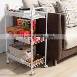 2016 Fashion Top Quality Metal White 3 Tiers Mesh Rolling Cart