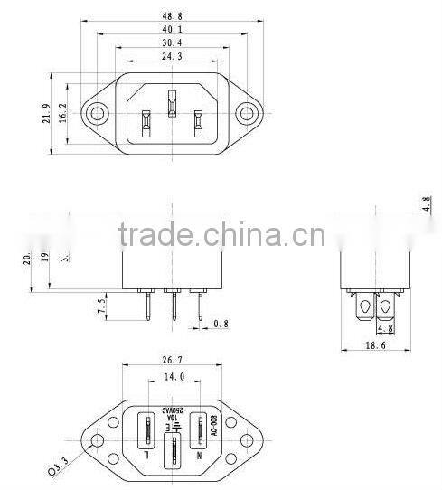 ac inlet power socketRating: AC 250V 2.5A-10A