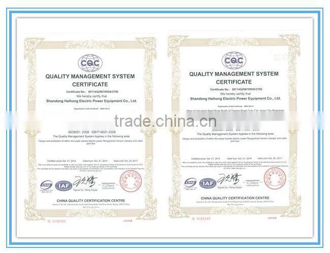 We are Shandong HaiHong Electric Power Equipment CO., LTD,established in 2007years. Location in Shandong,China (Mainland).Our factory size below 3,000 square meters.We main in ADSS OPGW accessories( Preformed Tension Clamp,Preformed Suspension Clamp,Vibration Damper,Cable Joint Box,Down Lead Clamp) and so on.