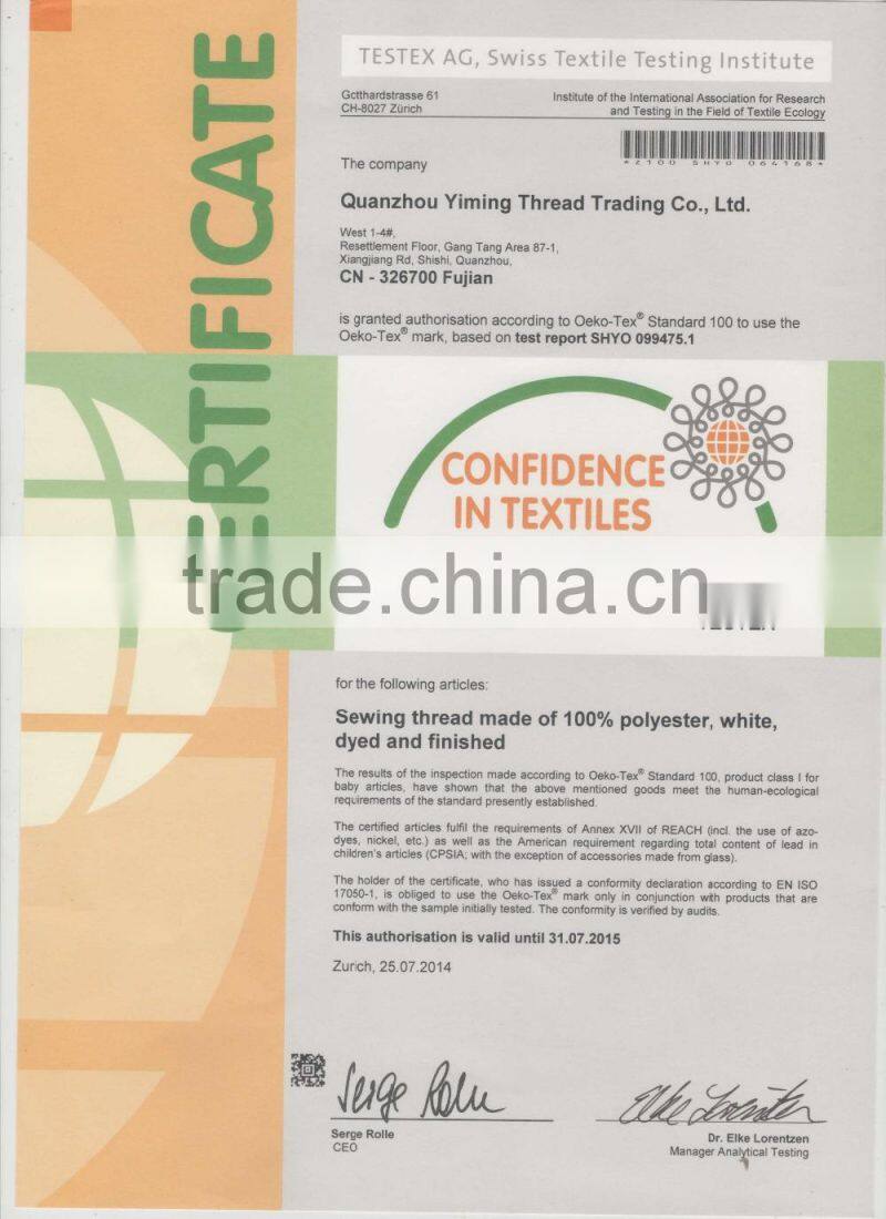 Yiming Thread is a large group company in Fujian China, has over 18 years experience in producing sewing thread and polyester dyed yarn. In 2015, the company has two factories over 700 employees in total, including sales and research department. We have a production capacity of producing 30000 cones sewing thread and 70 tons of dyed polyester yarn (DTY, FDY, Spun Yarn) per day. Our yarn and sewing thread has been export to Brazil, Bolivia, Ecuador, Peru, America, Greece, Thailand and etc. we are warmly welcome customers at home and abroad to cooperate with us.