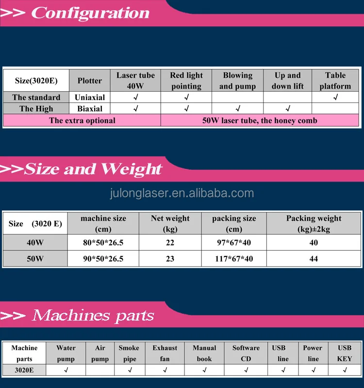 40W 50W Laser Tube 3020 Import Linear Guide Rail Machine