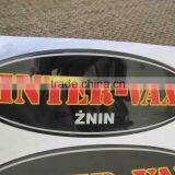 Our labels are produced using the best available material - polyurethane resin: it is much better than the more common epoxy resin. Whether the labels shall be sticked outside or inside, they will always stay flexible and their surface translucent. Epoxy resin labels change color, become stiff and can crack easily, but it is much easier to handle and therefore many producers use it, despite its poor durability and faults. This short-sighted policy is a clear disadvantage for customers. Labels are solvent, screen or offset technology printed without any middleman.