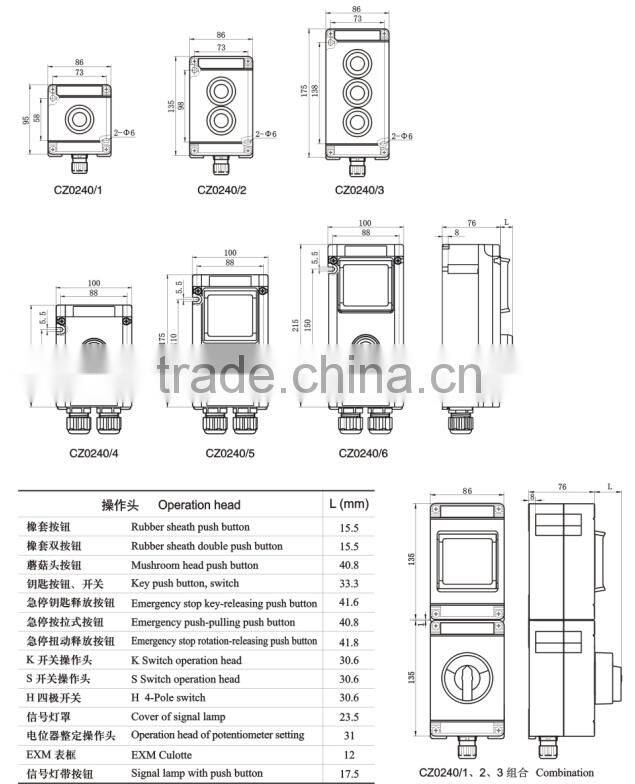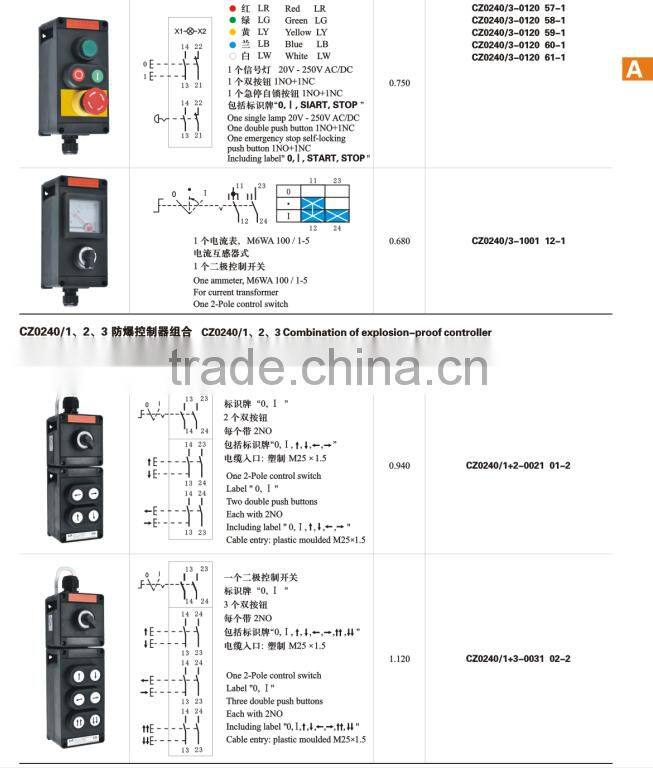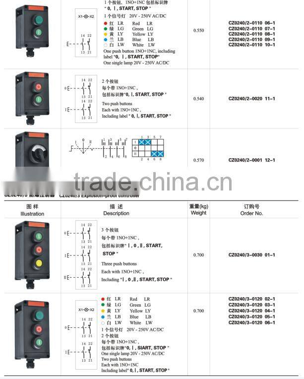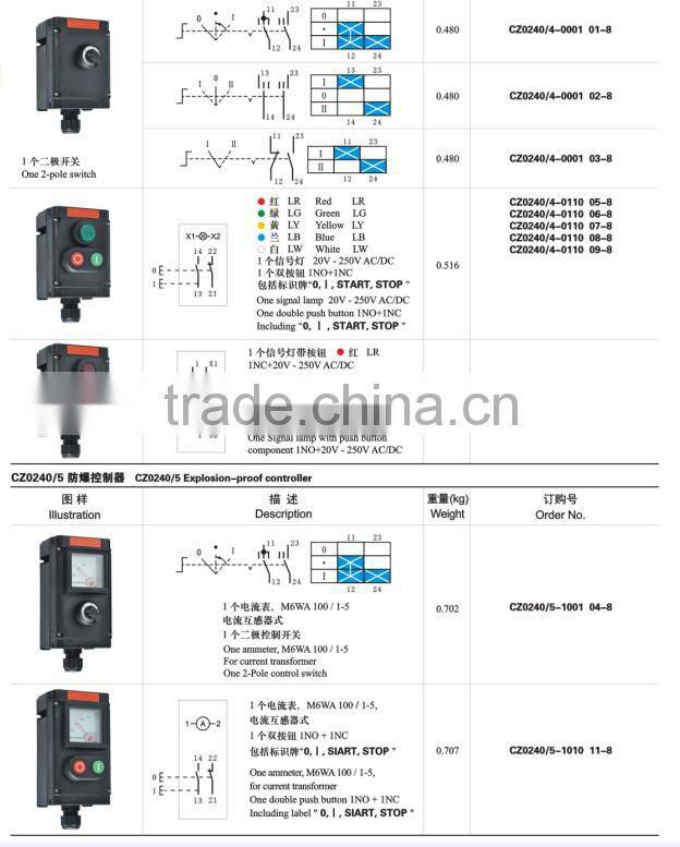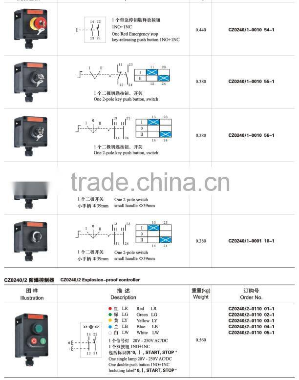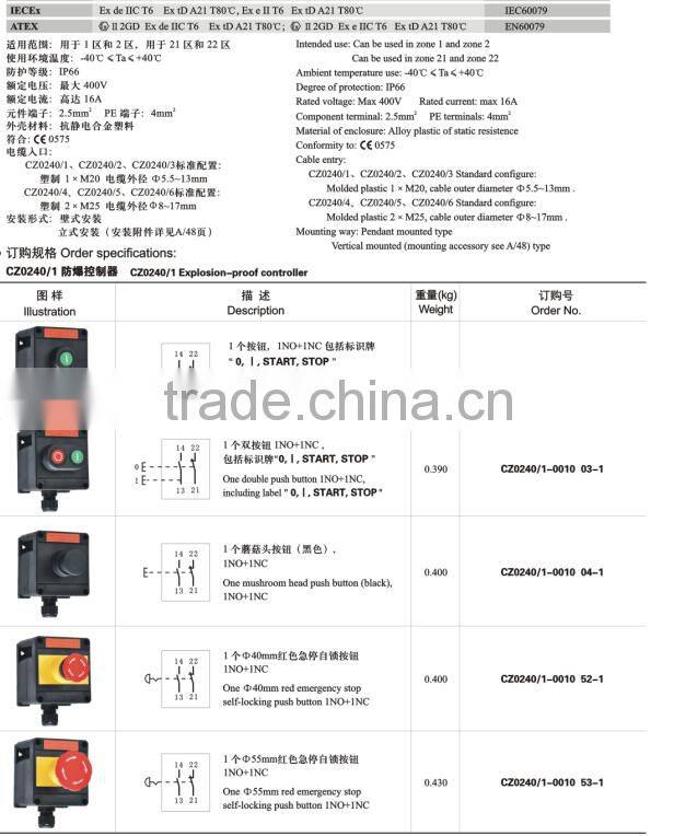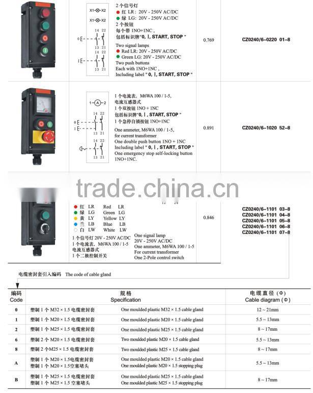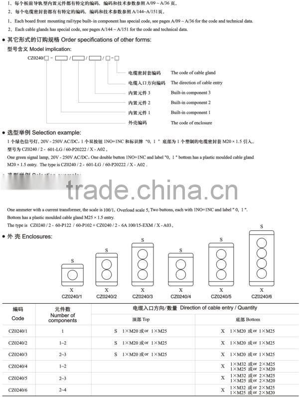This product belongs to CZ0240 series, which is composed of CZ0240/1 enclosure. Component is 1 pc LED indicationg lamp.Cable entry, for your option, but must be 1pc M20 or 1 pc M25.