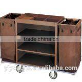 stainless steel like wood brown color hotel guest room service cart high quality cleaning trolley sign bag