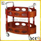 2 Layers Wooden Service Dining Liquor Trolley for Hotel Air Restaurant Yiyongjia With Four Wheel