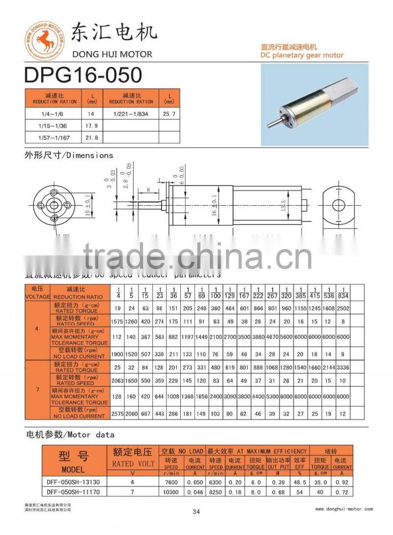 | Model Number | DPG16-050 6v Dc Micro Gear Motor with 16mm gear box for robot | Usage | Boat, Car, Electric Bicycle, Fan, Home Appliance | |