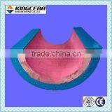 Under the driving of roller, the frictional force between the mechanical driving belt and the surface of dive pulley needs increasing to reduce wear between the surface of pulley and conveyor belt when they are slipping past one another, which will provide stable tractive force and prolong service life time of belt and dive pulley. KINGCERA has developed the dive pulley with ceramic –rubber coating on which the corundum ceramic with false compartment is as abrasion resistant layer to increase frictional force on its surface and abrasion resistant rubber polyurethane as vulcanization layer, both of which are bonded together with imported adhesives of high strength.