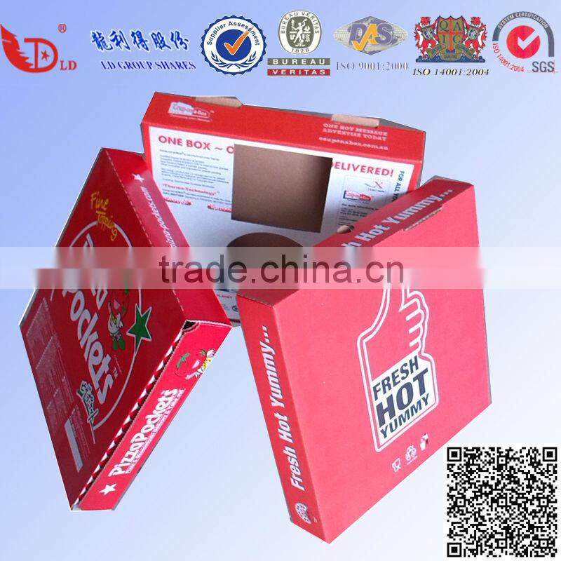 | 4 | Opportunity to communicate and promote your product and brand messages | Cut away holes at the front for easy opening,Ventilation holes on cheap carton pizza box to remove moisture |