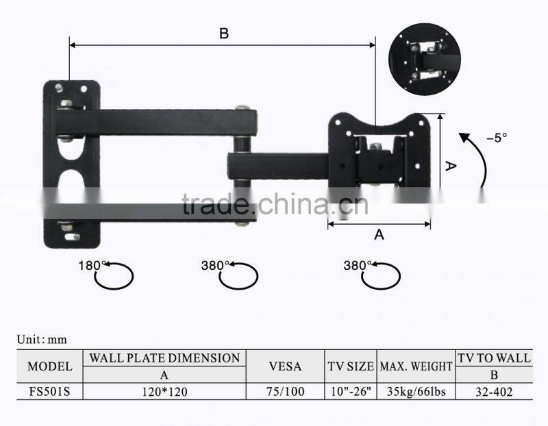 2015 Full Motion Vesa Tilted Lcd Swivel Bracket With New Design