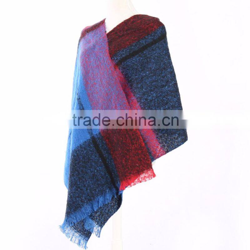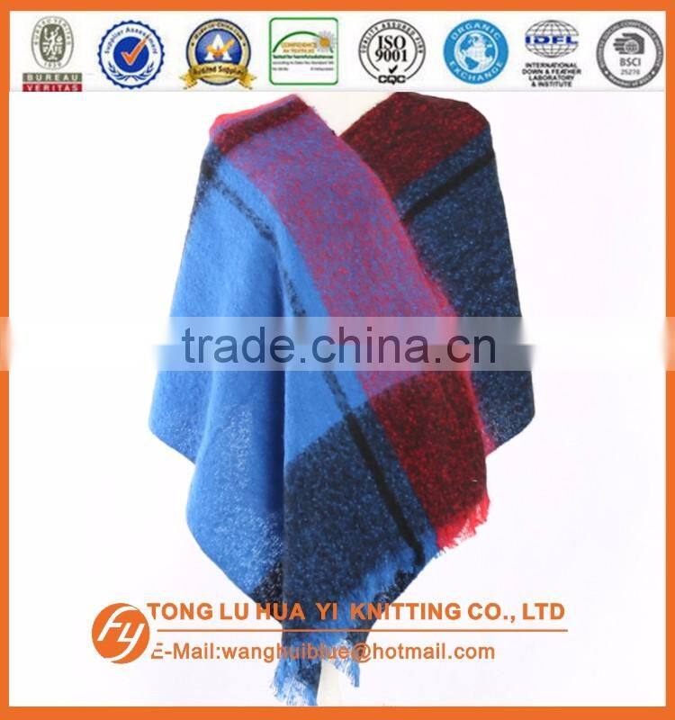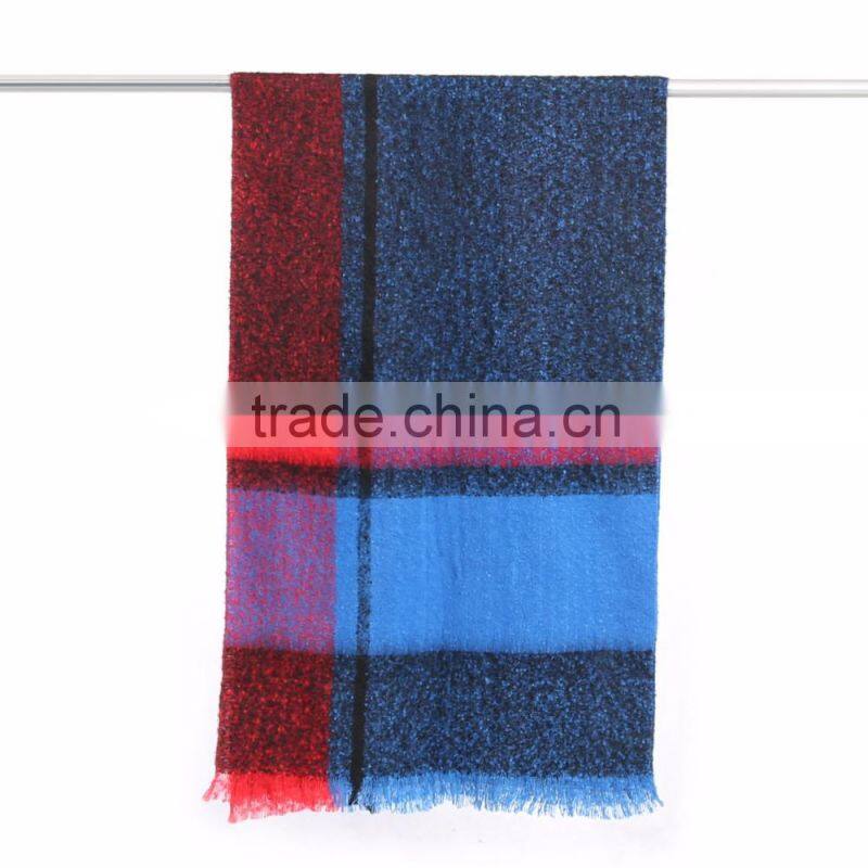 Fashion Soft Wholesale Blue Chequer Loop Yarn Woven Square Scarf
