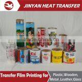 Jinyan can produce heat transfer film with various effects, Ordinary printing, Matt printing, Pearly printing, Laser and Hologram printing, Metal Silver&Gold printing, but also Injection in-mold labels. Heat transfer film can now applied to abundant material including PP,ABS,AS,PS,PC,PE,PVC,Glass,Metal,Wood,Bamboo,Leather.