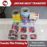 Jinyan can produce heat transfer film with various effects, Ordinary printing, Matt printing, Pearly printing, Laser and Hologram printing, Metal Silver&Gold printing, but also Injection in-mold labels. Heat transfer film can now applied to abundant material including PP,ABS,AS,PS,PC,PE,PVC,Glass,Metal,Wood,Bamboo,Leather.